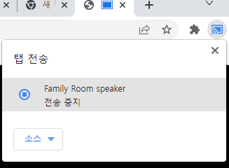 4. 음악 전송이 시작되면 탭과 툴바에 전송 아이콘과 버튼이 추가되면서 구글 홈 미니로 음악이 재생됩니다.